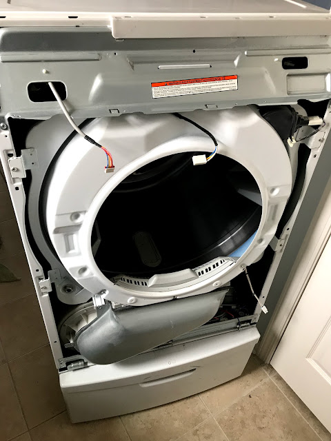 I know nothing about driers but I decided I would figure it out. After 10 minutes with the cordless impact and 5 minutes with a Fluke I found the heating element broken. The new element from Amazon will be here tomorrow, it looks fairly easy to change.